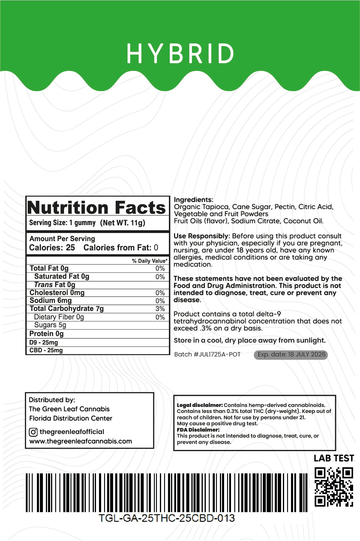 Hybrid 500mg Gummies – 25mg THC + 25mg CBD – Green Aple – The Green Leaf Cannabis