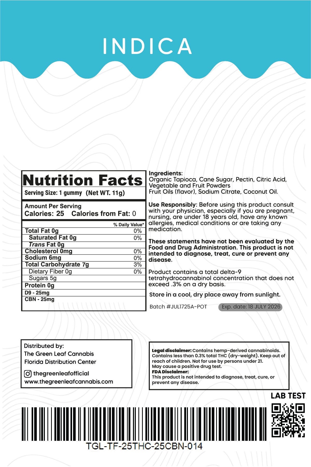 Indica 500mg Gummies – 25mg THC + 25mg CBN – Tropical – The Green Leaf Cannabis